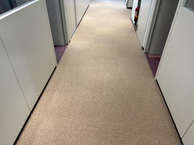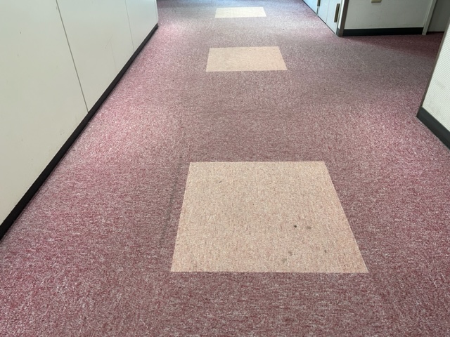 カーペット貼替え後は、明るく清潔感のある床面に一新。