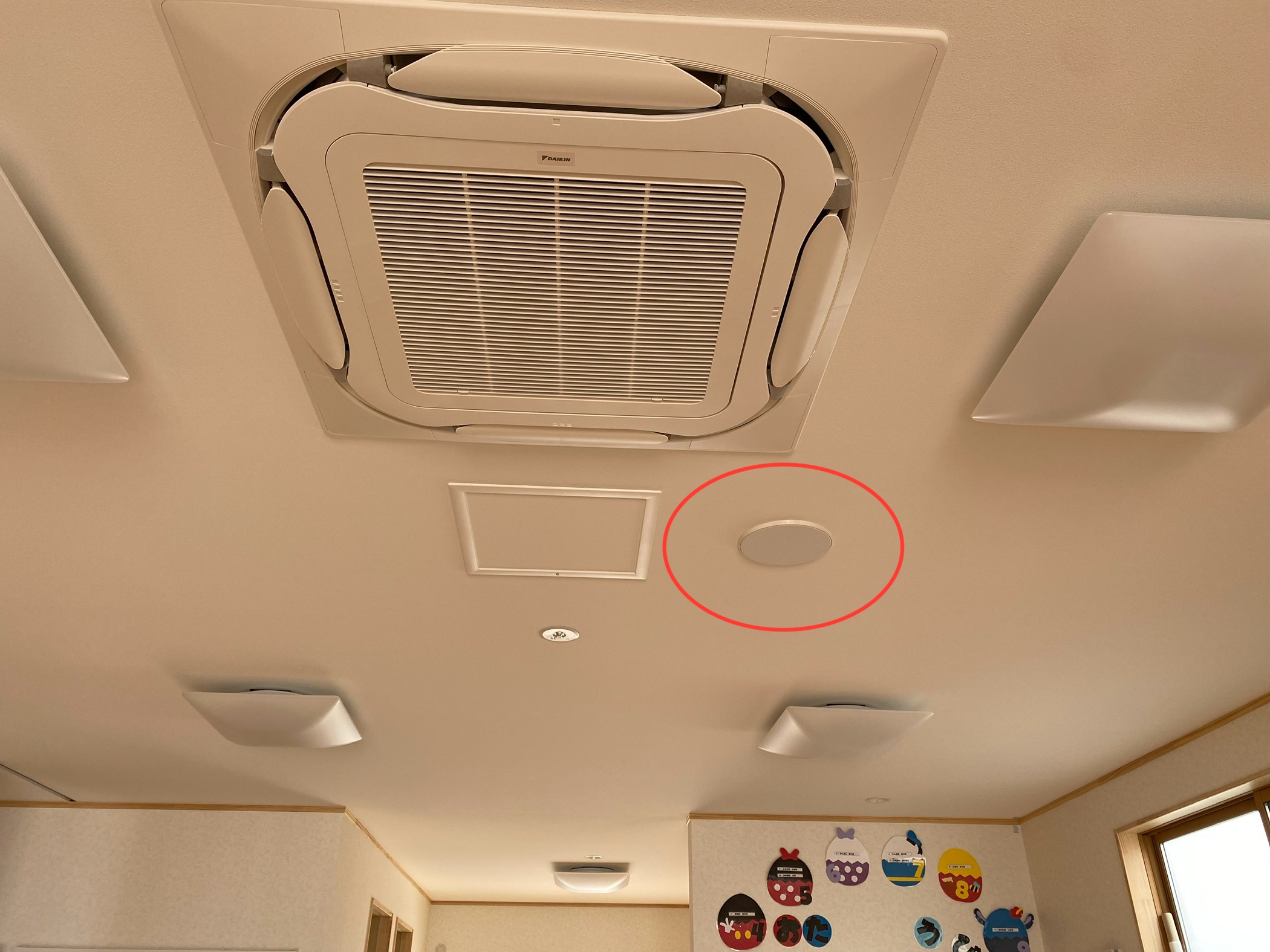 増築した園舎にも放送が届くように…スピーカー設置工事を行いました