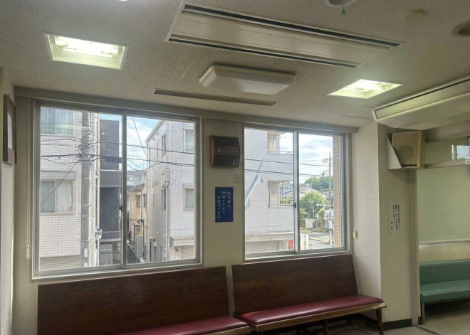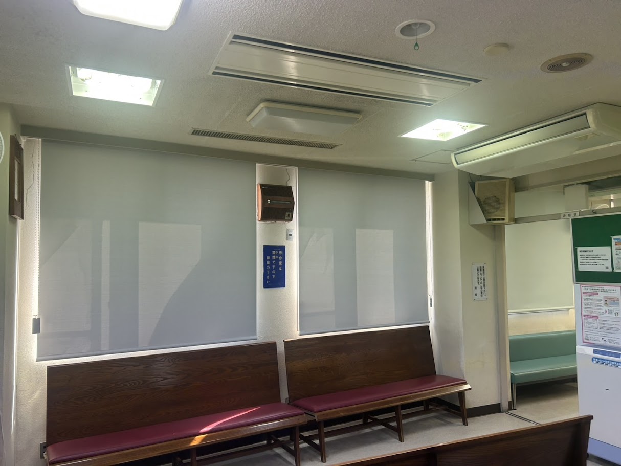 待合室の眩しさ対策にロールスクリーンを設置しました