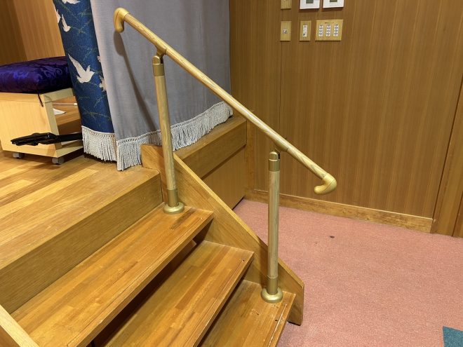 ステージ階段に手すりを設置し安全性を向上しました