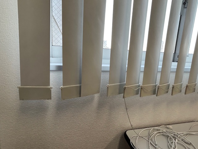 縦型ブラインドは経年劣化により、歪みや汚れが見られる状態でした。