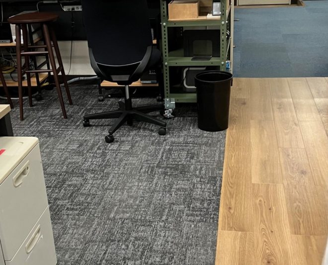長年使用されていた床材は、汚れや摩耗が目立ち始めており、オフィス全体の印象にも影響を与えていました。