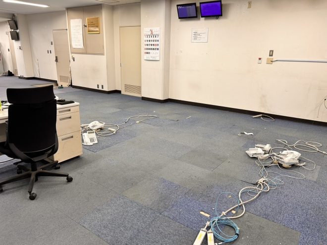 写真のように、施工スペースごとに区切りながら作業を進めることで、業務への影響を最小限に抑えました。