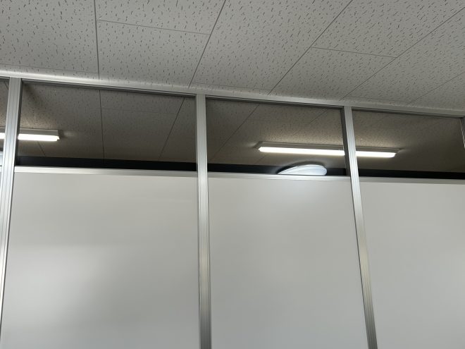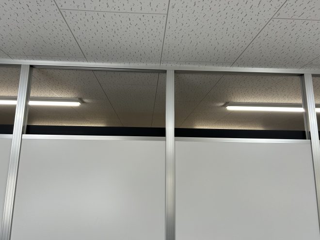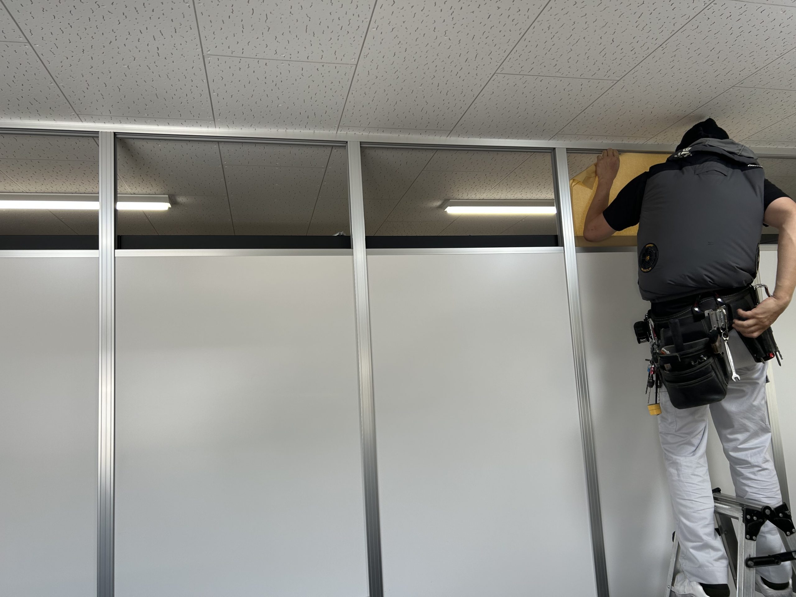 今回は、応接室の間仕切上部(欄間部分)における塞ぎ工事を実施しました。