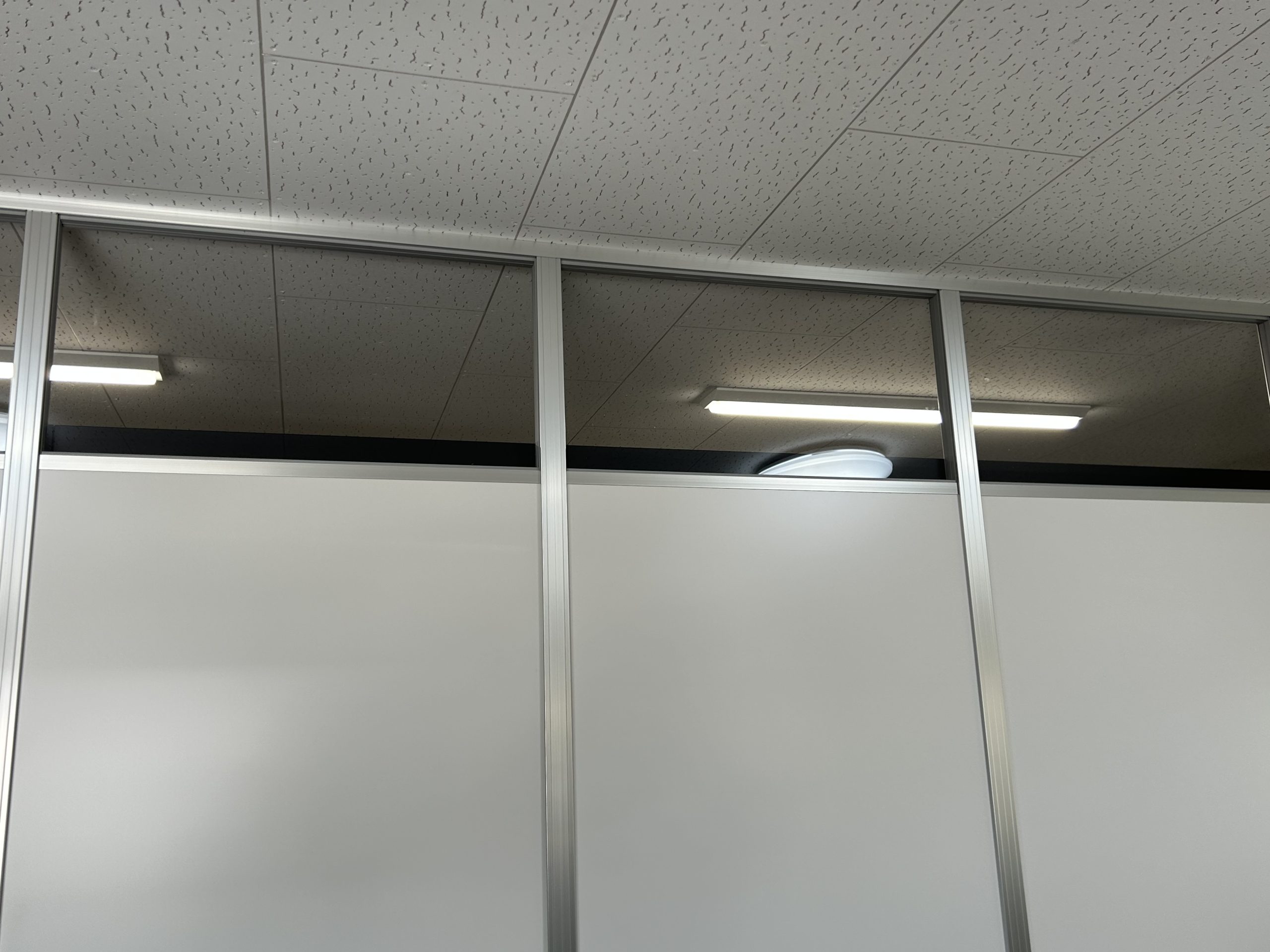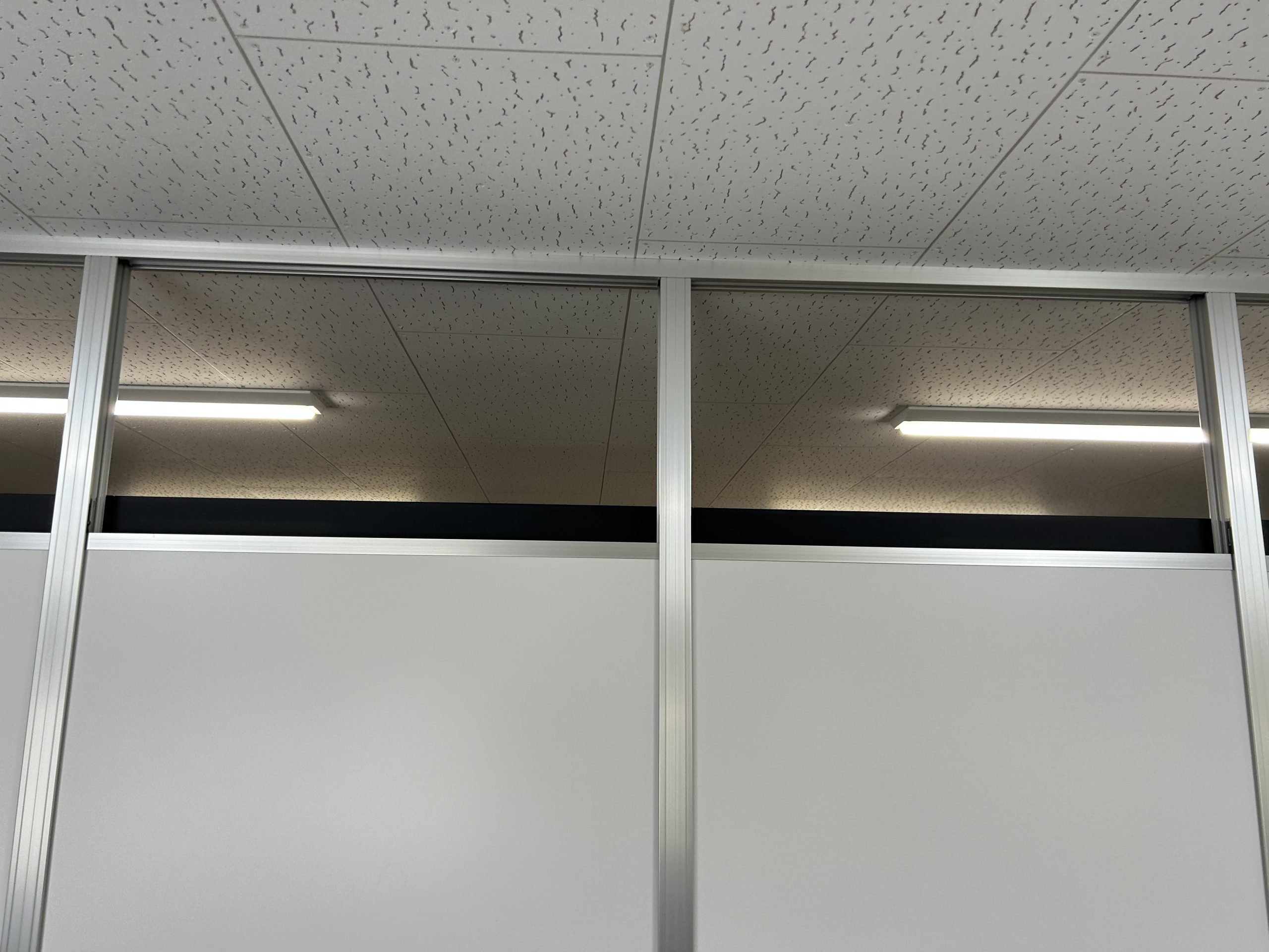 応接室の声漏れを防ぎたいとのご要望があり、既存の間仕切の上部開口部(欄間)を塞ぐ工事をご提案・施工させていただきました。