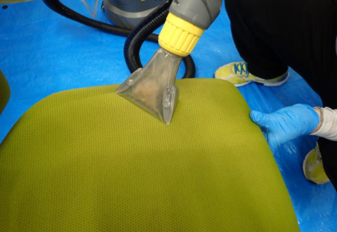 今回は、オフィスで使用されている布張りのチェアを対象に、洗浄クリーニング作業を実施いたしました。長年使用されているイスには、汗や皮脂、ホコリなどが蓄積しており、見た目にも使用感が出ていました。