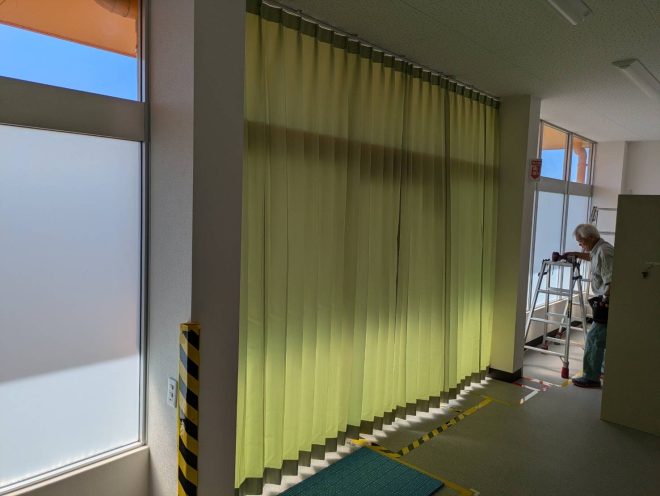 今回の工事では、スペースごとの使い方に合わせてカーテンを選定しました。