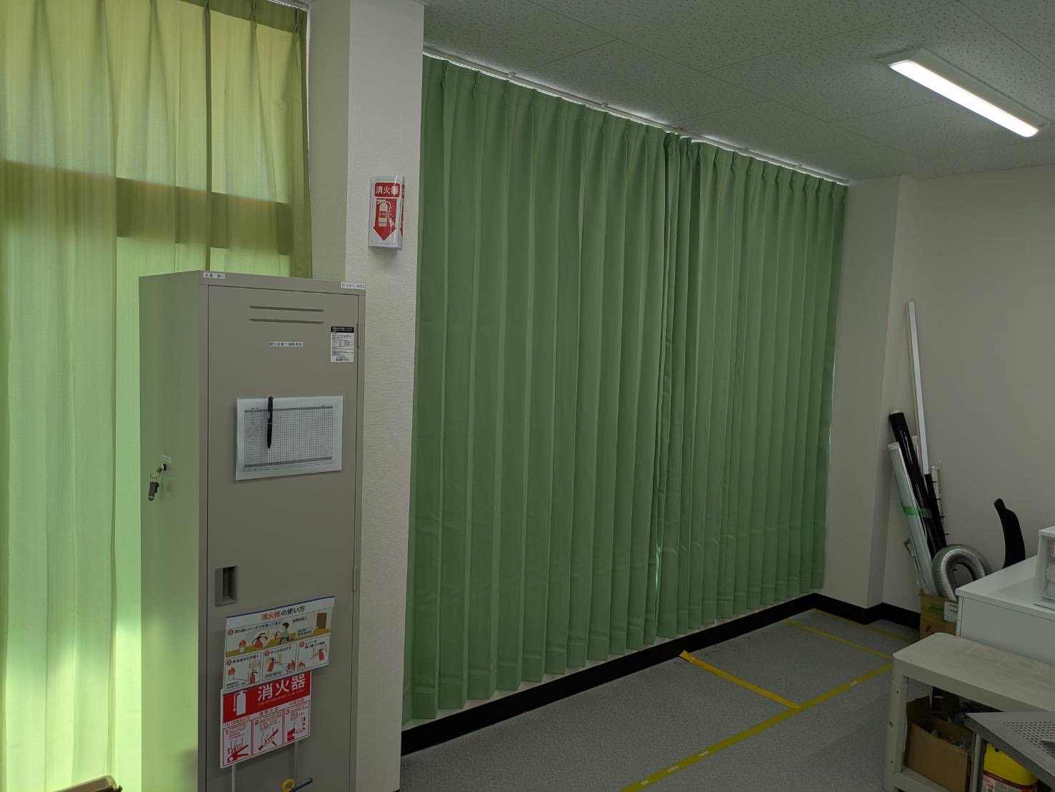 今回の工事では、スペースごとの使い方に合わせてカーテンを選定しました。