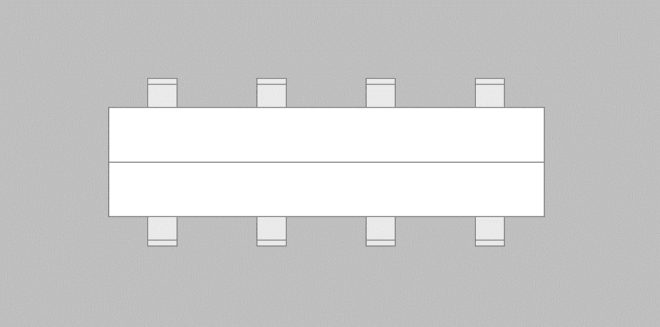 同一部署の社員同士が背中合わせに着席する配置形式です。 視線が合わないため業務に集中しやすい環境を作ることができます。 後方を振り返ればすぐに会話ができるため、集中とコミュニケーションのバランスに優れたレイアウトと言えます。 スペースに余裕がある場合、中央にミーティングテーブルを設置することで打ち合わせの効率がさらに向上します。