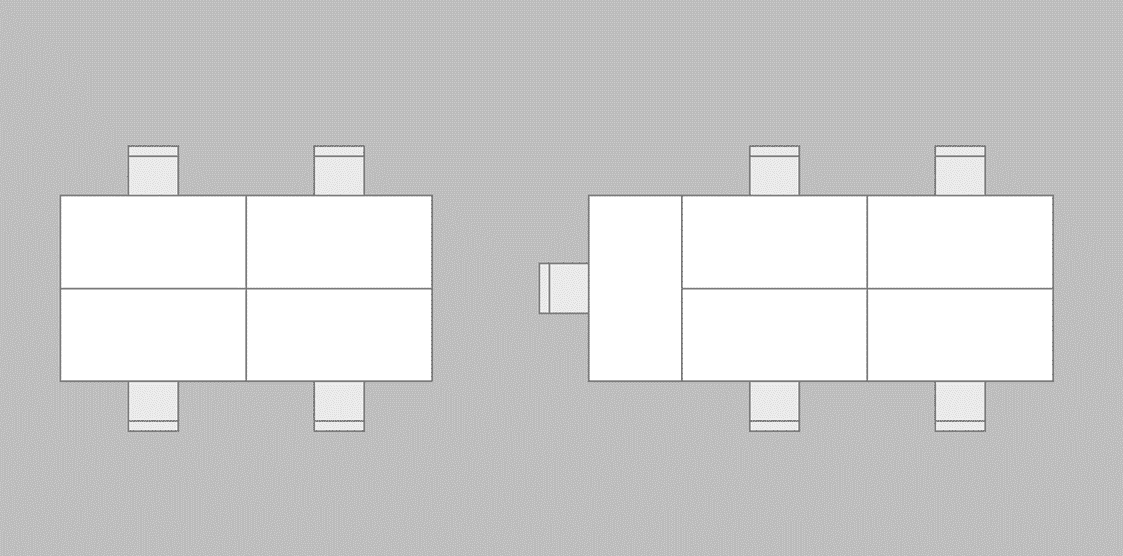 視線が正面の相手と交差しないためプライバシーが保たれやすく、必要に応じて横を向けば会話も可能です。 個人の作業効率とコミュニケーションを両立できる優れた形式ですが、導入には広いスペースを必要とします。