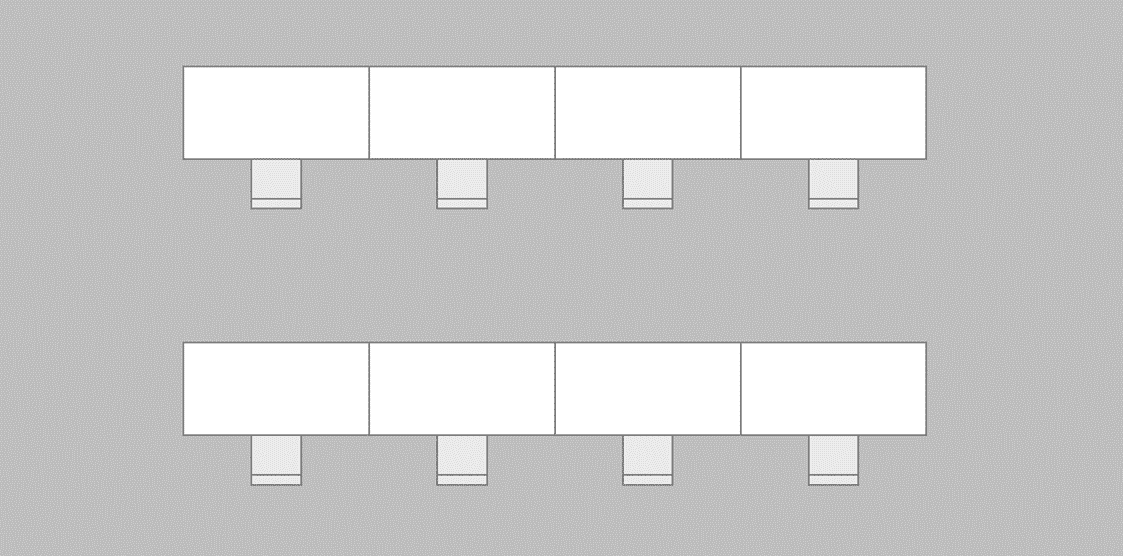 すべてのデスクを同一方向に向けて並べる形式です。 学校の教室と同様の配置であることからスクール式とも呼ばれます。